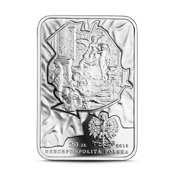 Awers: centralnie fragment kurtyny Teatru im. Juliusza Słowackiego w Krakowie autorstwa Henryka Siemiradzkiego, przedstawiający alegoryczne postacie Natchnienia, Piękna i Prawdy oraz Tragedii, Komedii i Błazna, otoczony udrapowanym materiałem. W dolnej części z prawej strony wizerunek orła ustalony dla godła Rzeczypospolitej Polskiej; z lewej strony orła napis: 20 ZŁ, z prawej strony oznaczenie roku emisji: 2019, poniżej wzdłuż brzegu napis: RZECZPOSPOLITA POLSKA. Pod orłem, po prawej stronie, znak mennicy: m / w.