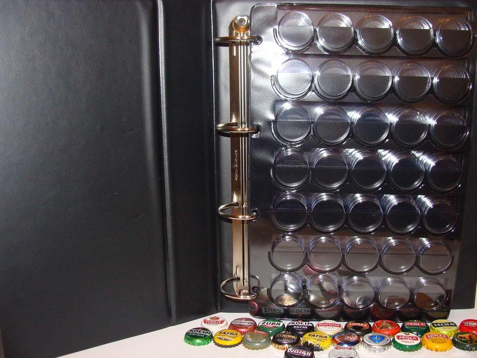 Album na 175 kapsli piwnych. Posiada 5 stron, ze sztywnej, tłoczonej folii, góra strony przeźroczysta, spód czarny, matowy.
