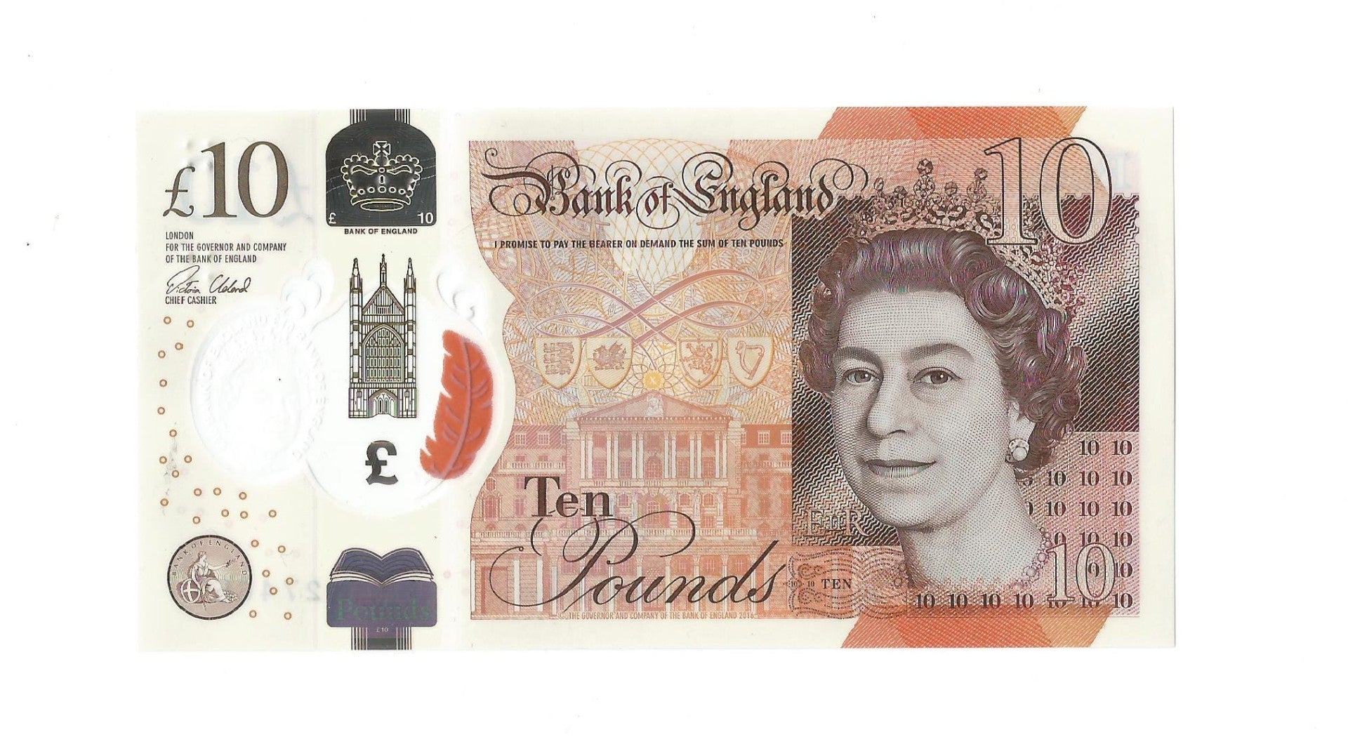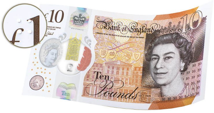 14. września 2017 roku Bank Anglii wprowadził do obiegu nowy banknot o nominale 10 funtów. Został on wydrukowany na podłożu polimerowym.