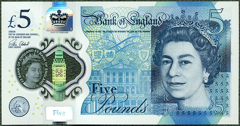 13. września 2016 roku Bank Anglii wprowadził do obiegu nowy banknot o nominale 5 funtów.