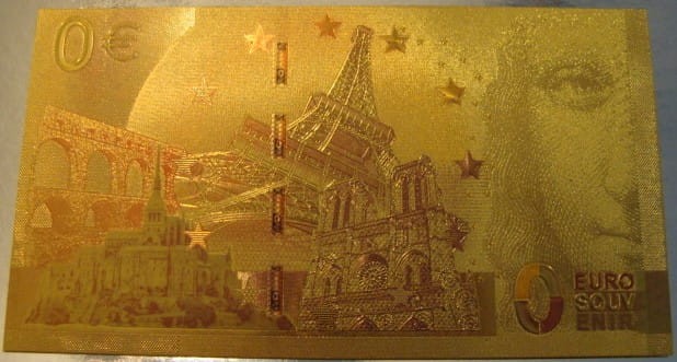 Banknot złocony: "0" - zero Euro / Polska