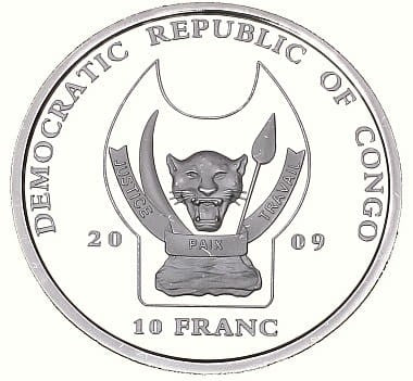 Demokratyczna Republika Konga: moneta kolekcjonerska 10 franków / 2009 r. - Zagrożone zwierzęta - Zebra.