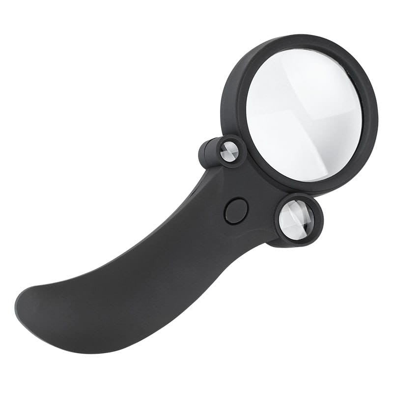 Lupa - 3 w 1 z podświetleniem: trzy soczewki: 65 mm, 25 mm i 12 mm + 4 x LED i 1 x UV LED; powiększenie: 2,5 x, 25 x i 55 x
