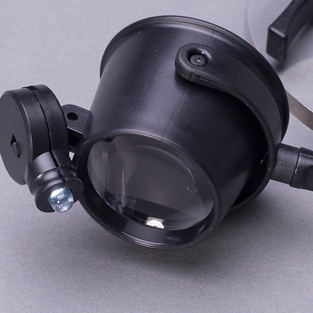 Monokl jubilerski, lupa jubilerska (15 x) z uchwytem, obejmą na głowę i podświetleniem LED.